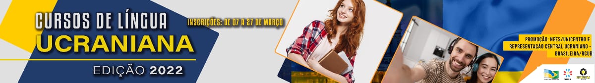 O Projeto de Extensão “Cursos de Língua Ucraniana” está vinculado ao Núcleo de Estudos Eslavos/NEES e se desenvolve em parceria com a Representação Central Ucraniano-Brasileira. Os cursos são ofertados para toda a comunidade. Essa ação extensionista contribui para o fortalecimento dos agentes culturais que atuam no interior das comunidades marcadas pela cultura de imigração ucraniana. Os cursos são organizados em módulos semestrais de 30 horas, NA MODALIDADE REMOTA, para dar continuidade a ofertas já consolidadas pelo NEES.
