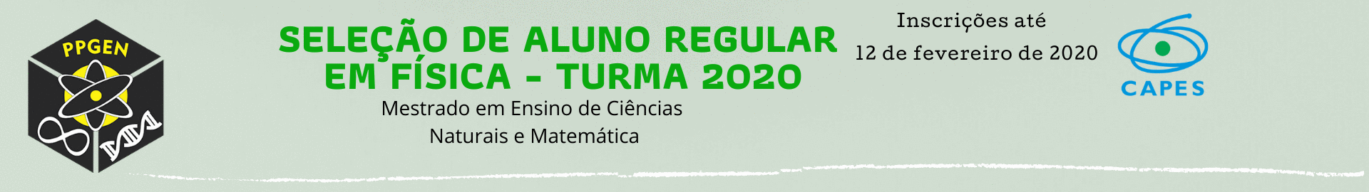 Reabertura das Inscrições para a seleção de alunos regulares - Programa de Pós-graduação em Ensino de Ciências Naturais e Matemática, área de Física, Turma 2020.