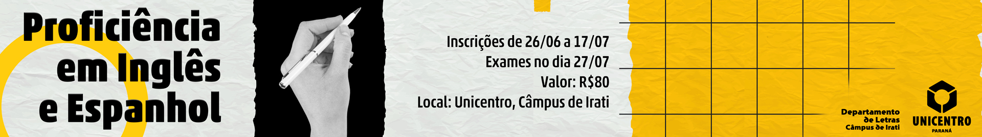 Exame de proficiência em línguas estrangeiras (Espanhol e Inglês) - Universidade Estadual do Centro-Oeste, Campus de Irati.