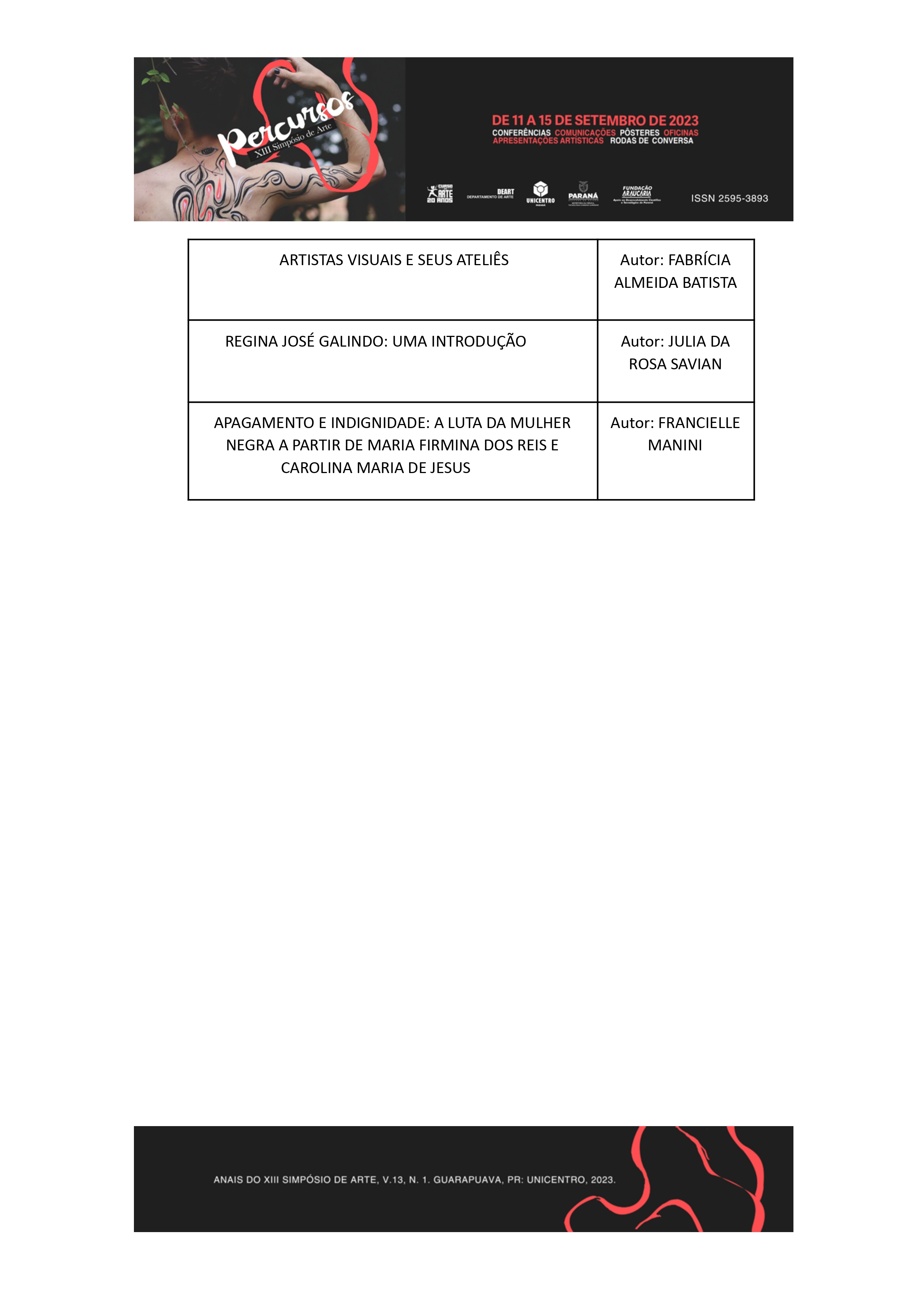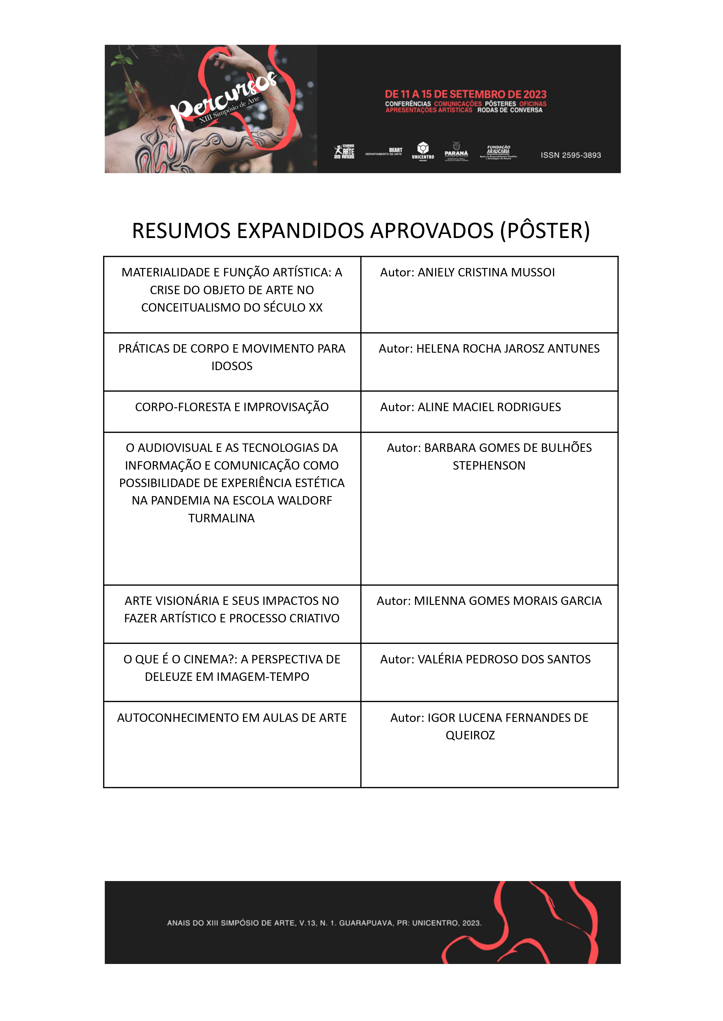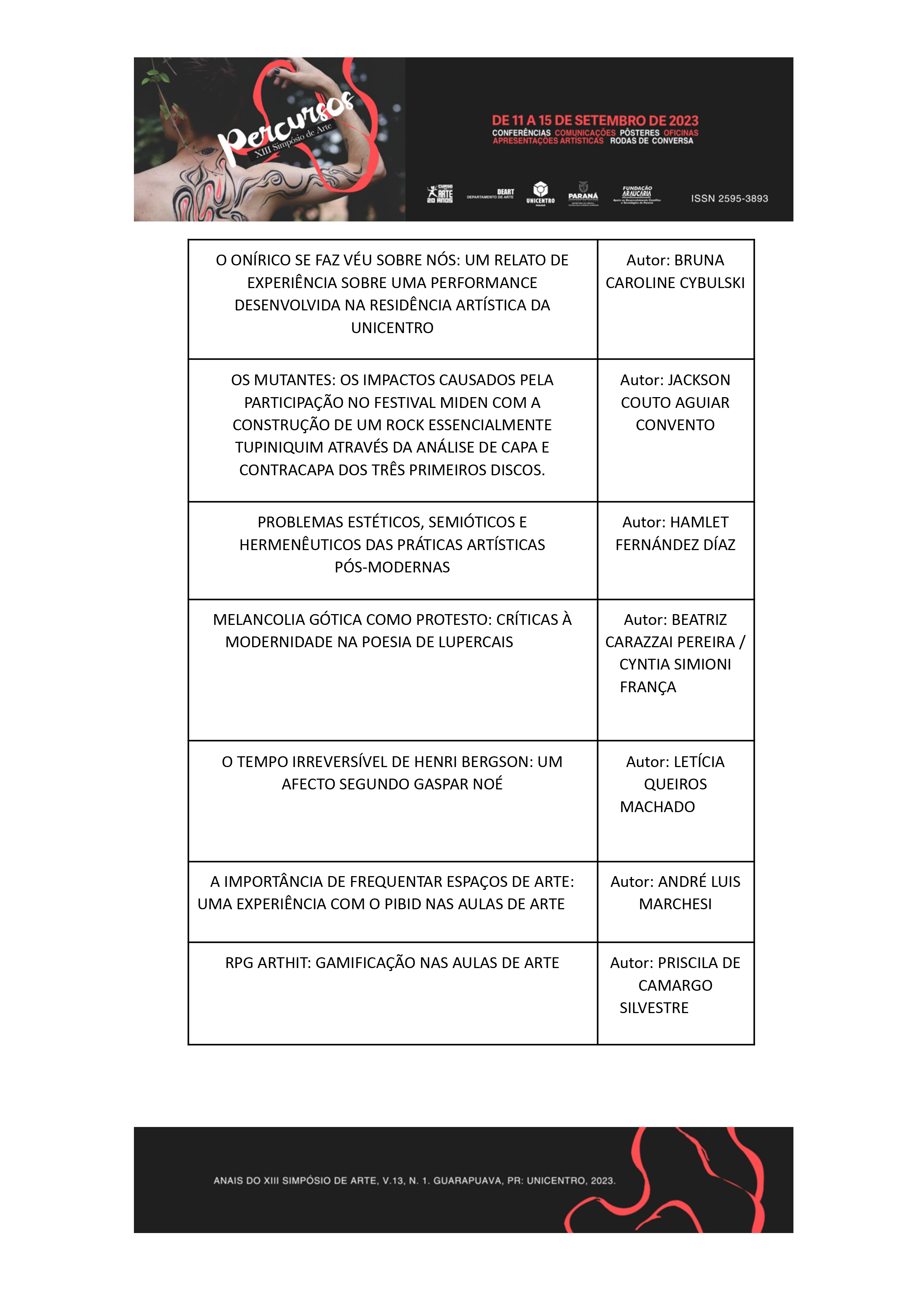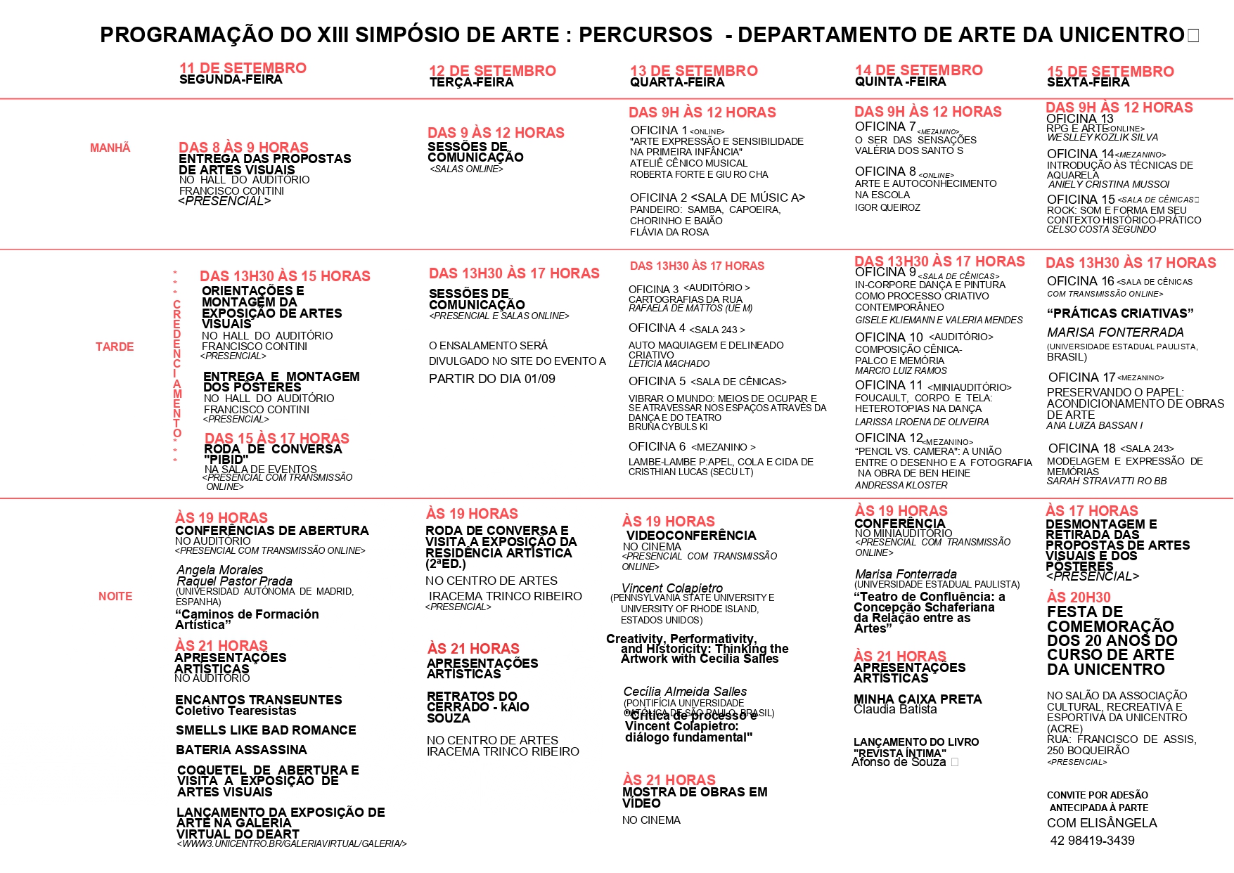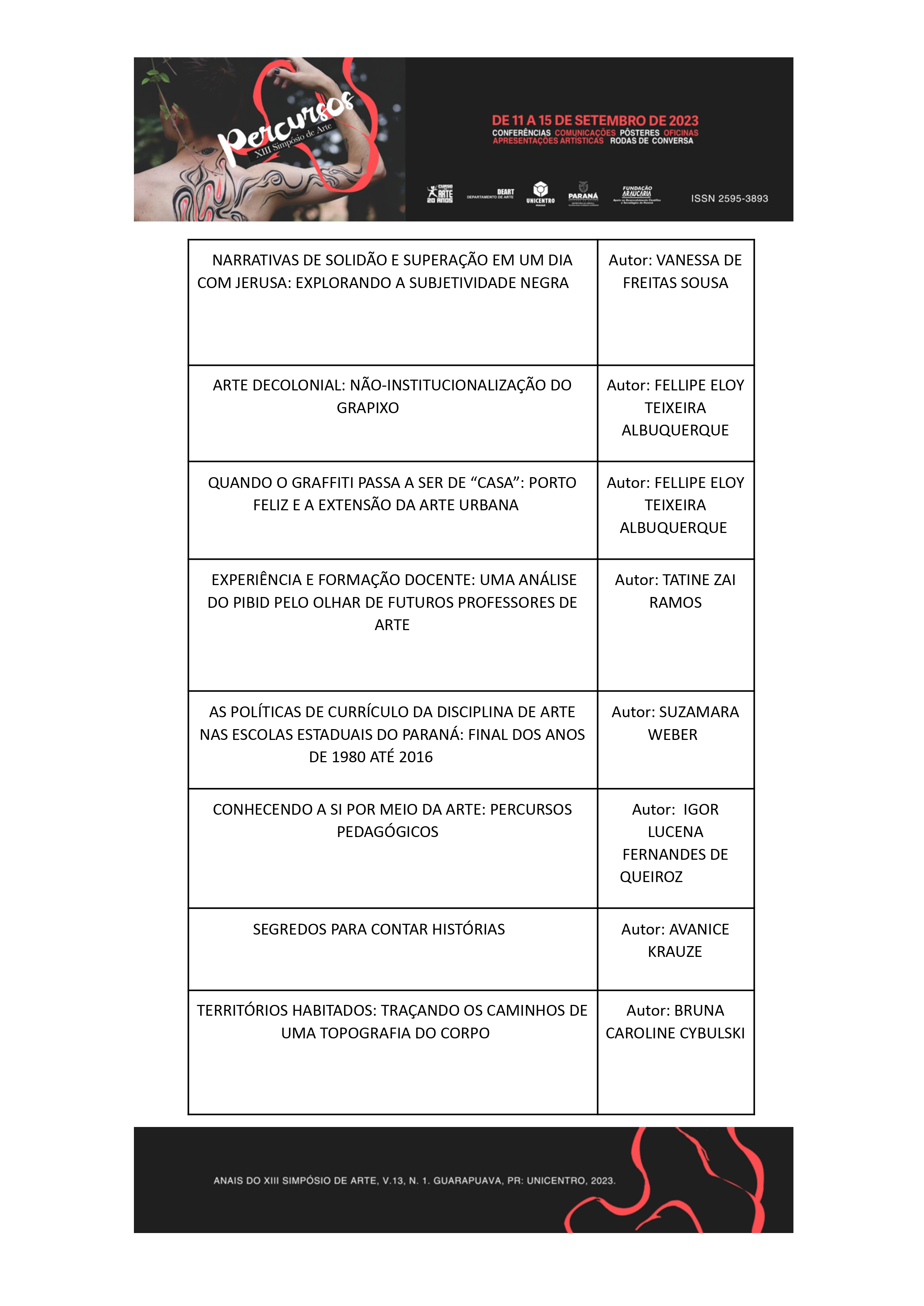 11 a 15 de setembro de 2023: XIII Simpósio de Arte: Percursos