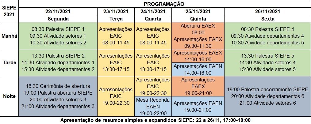 Cronograma de apresentações de resumos simples e expandidos SIEPE: